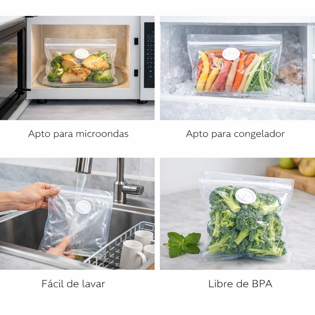 Aptas para microondas y congelador; fáciles de lavar y completamente libres de BPA, ofrecen una solución práctica, segura y duradera para almacenar tus alimentos.